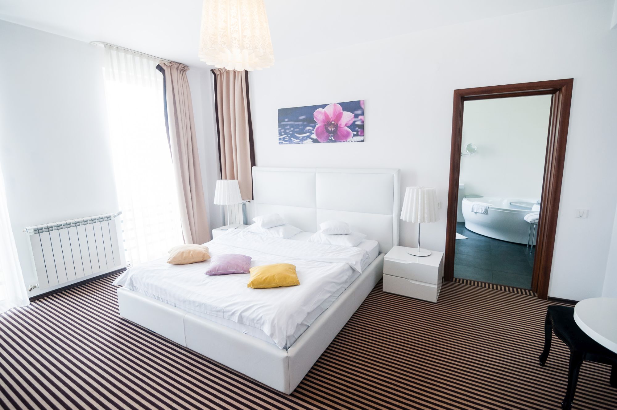Va oferim o selectie de camere spatioase, camere twin, double si apartamente. Serviciile si facilitatile noastre de cazare sunt ideale pentru fiecare oaspete. Hotelul dispune de 60 de locuri de cazare in 30 de camere cu urmatoarea structura: 17 double cu twin beds, 6 double cu pat matrimonial, 1 junior suite si 6 apartamente. Toate camerele sunt echipate cu TV cu ecran plat, TV cablu, aer conditionat si minibar. Oaspetii nostri beneficiaza de asemenea si de produse cosmetice, uscatoare de par, halate de baie si papuci, iar serviciul de menaj este asigurat zilnic.